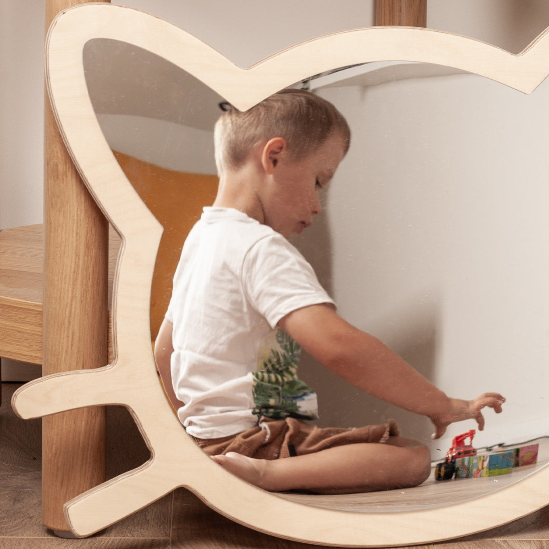 Ein Blick in diesen Spiegel zaubert kleinen Tierfreunden garantiert ein Lächeln ins Gesicht. Die liebevolle Form bringt nicht nur Freude ins Kinderzimmer, sondern unterstützt auch die Selbstwahrnehmung auf spielerische Weise – perfekt im Sinne der Montessori-Pädagogik. Dank hochwertigem, FSC-zertifiziertem Holz und kindersicherem Spiegelmaterial ist dieses Accessoire nicht nur ein Blickfang, sondern auch rundum durchdacht.